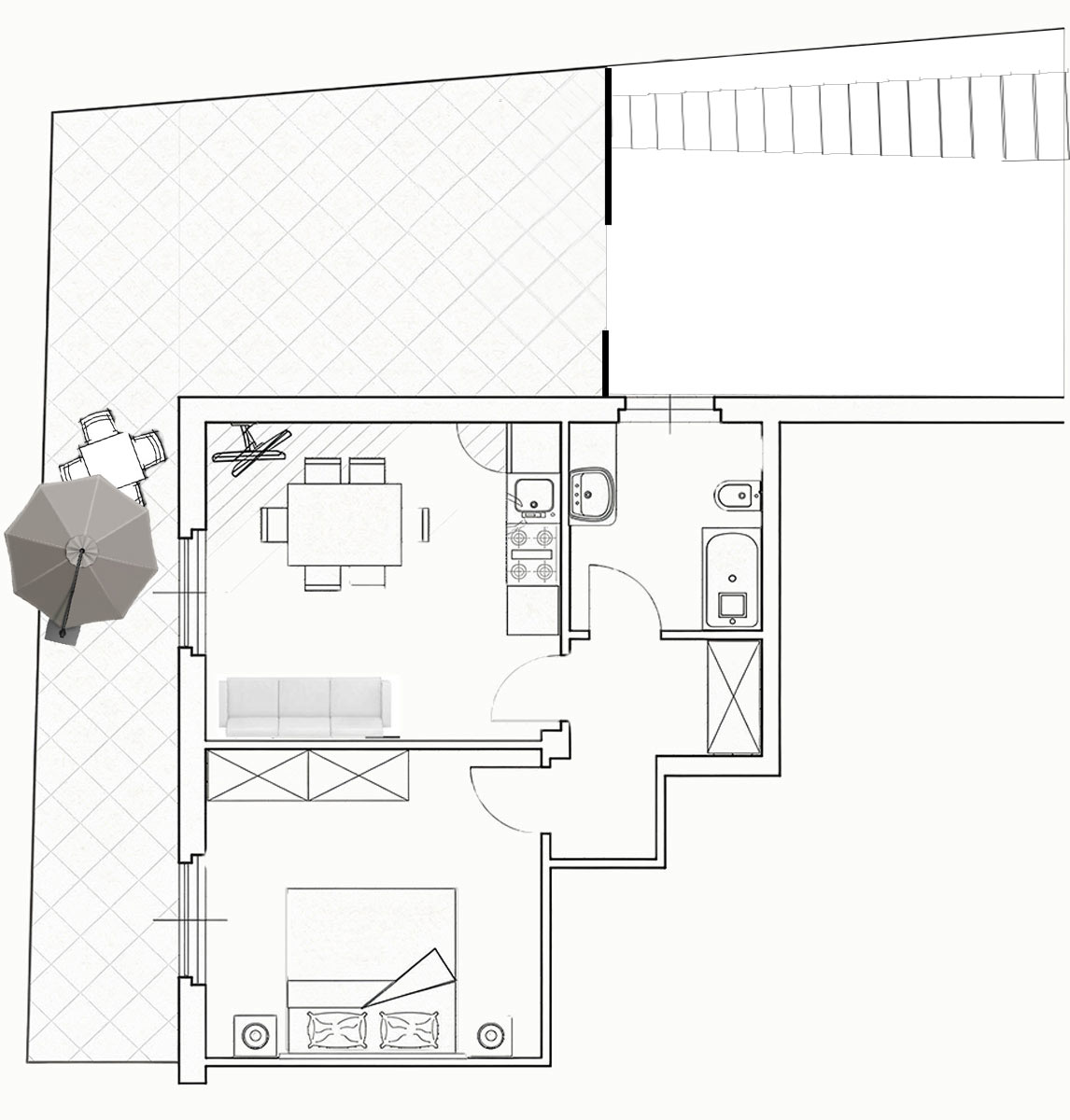 In addition to the private terrace, you can directly access the large common terrace.